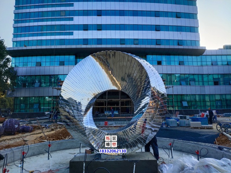 6米不锈钢莫比乌斯环雕塑:制作材料304不锈钢,工期18天,适用于学校,酒店,商业街